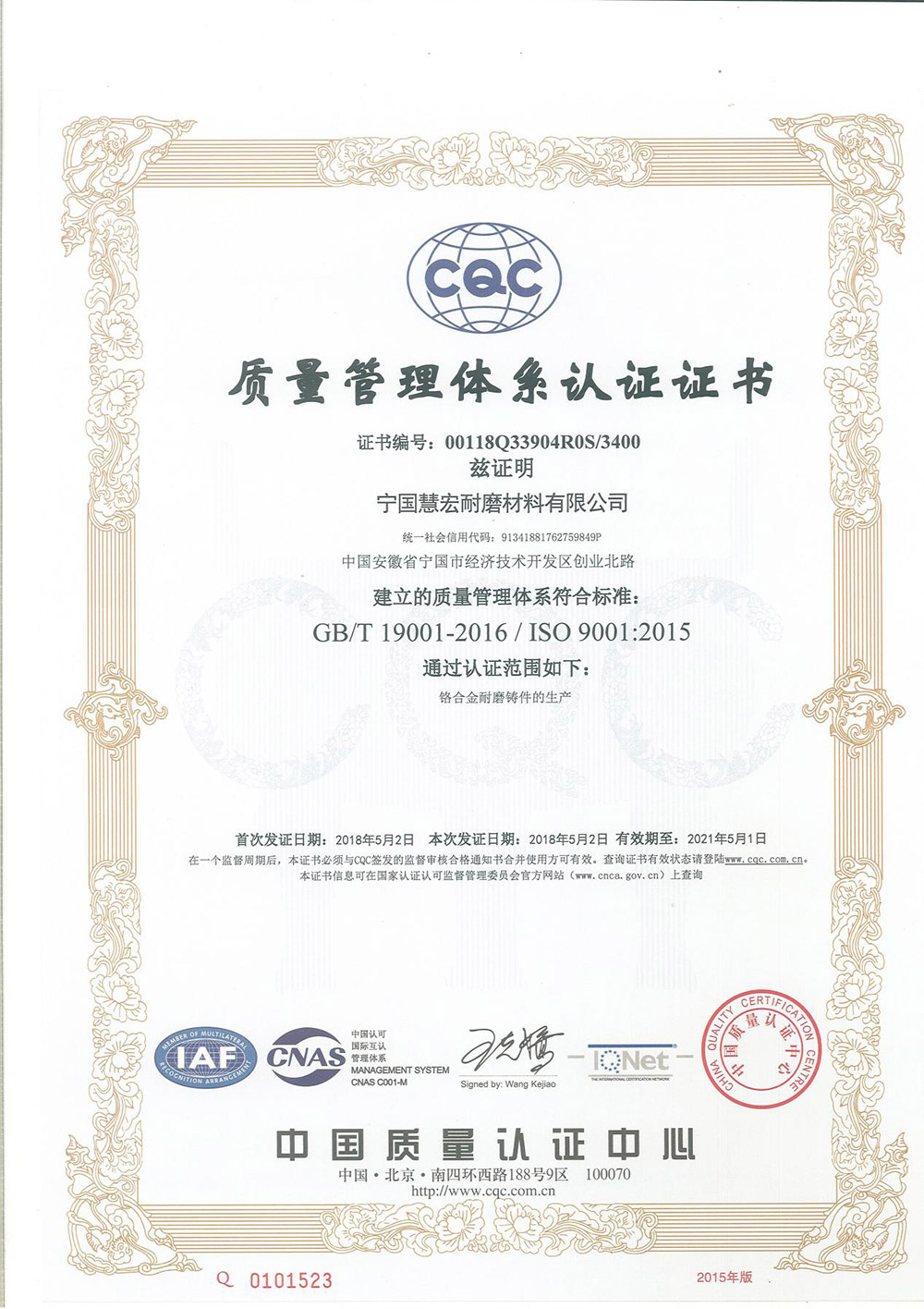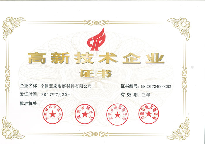 Fully implement ISO9001; 2000 quality management system standards, adhering to the quality policy of "scientific management, meticulous manufacturing, high-quality service, and pursuit of excellence", and constantly creating high-end wear-resistant materials.